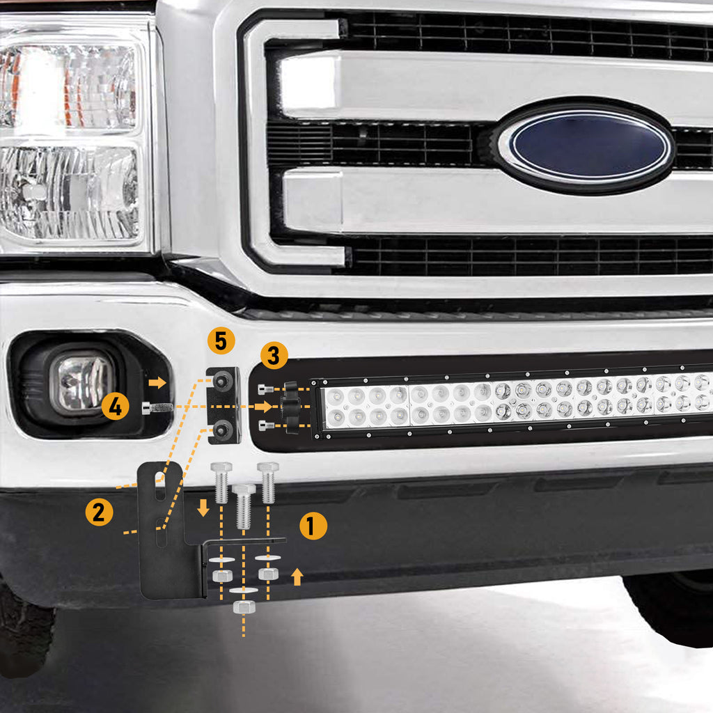 4.Package Including: a pair of bumper tow hook replace brackets, a pair of light bar mount brackets and 1x 42 inch LED light bar with wiring kit.