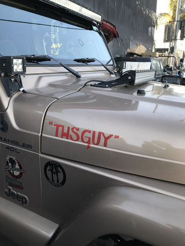 - Aftermarket 22" LED light bar hood mount kit for Jeep Wrangler JK